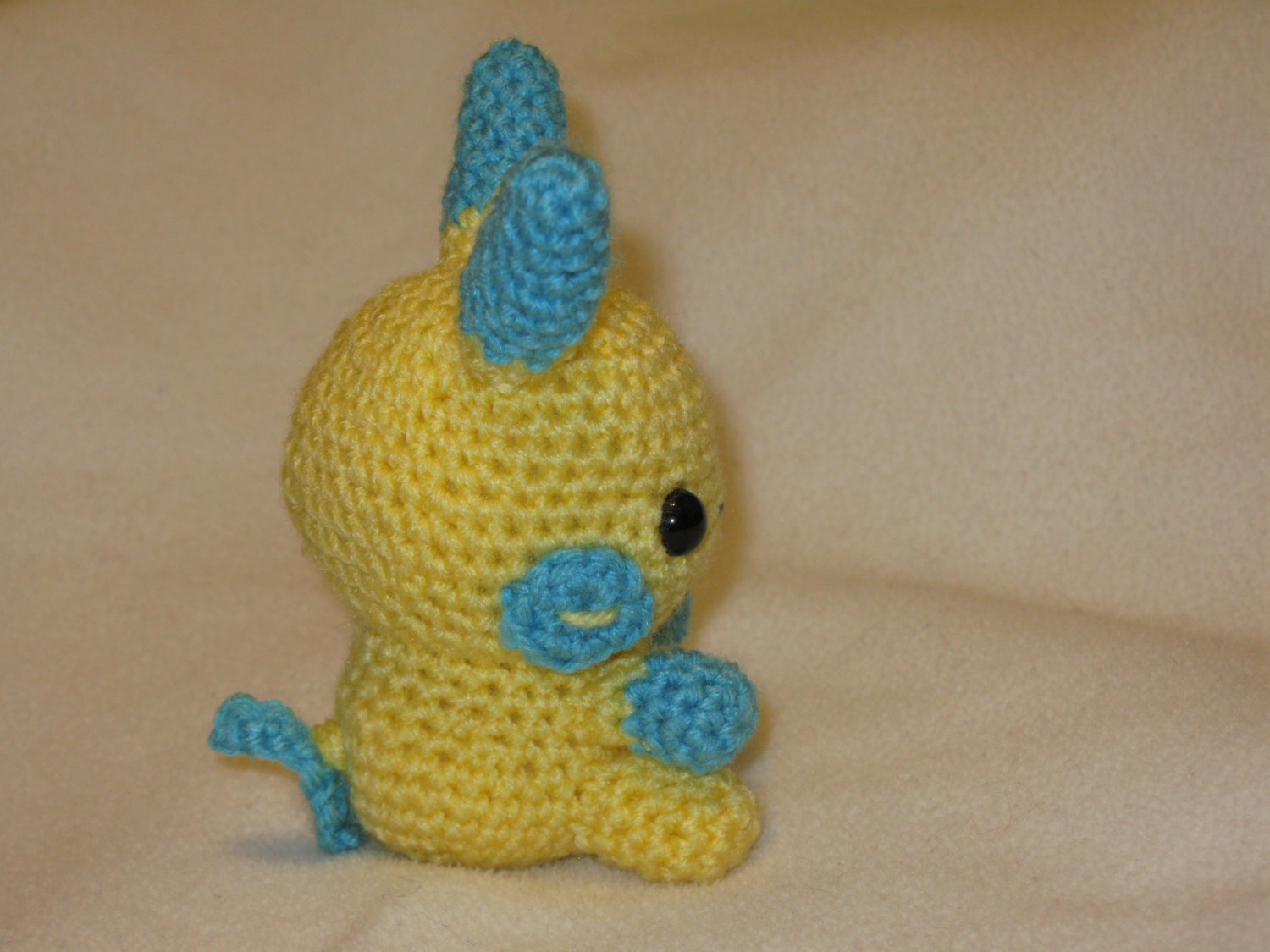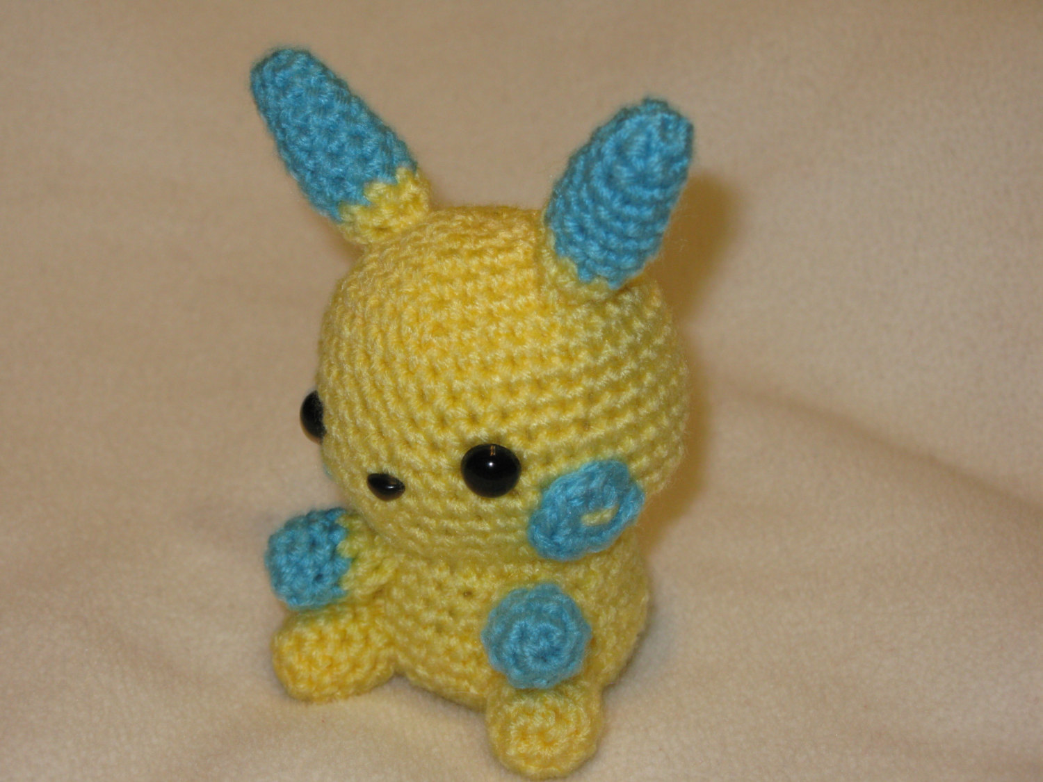 Made just for you with love, acrylic yarn, and safety eyes, your Chibi Minun will be about 5 inches tall.