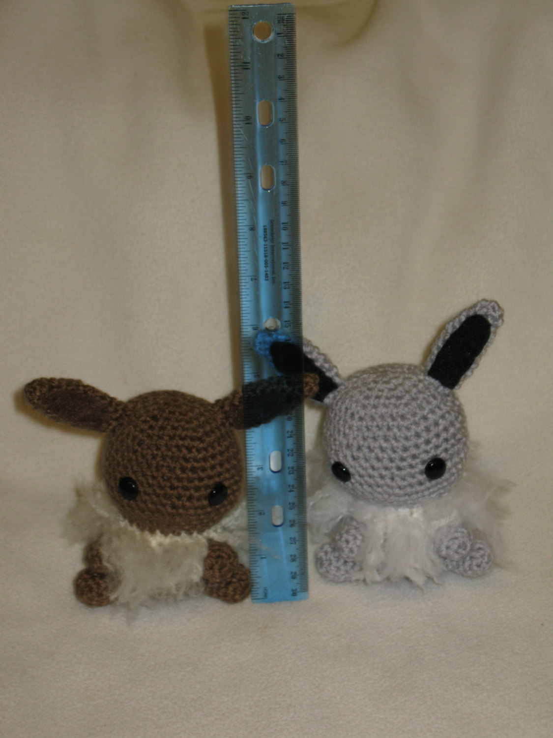 Made just for you with love, acrylic yarn, safety eyes, and a little acrylic felt, your Chibi Eevee will be about 5 - 6 inches tall.