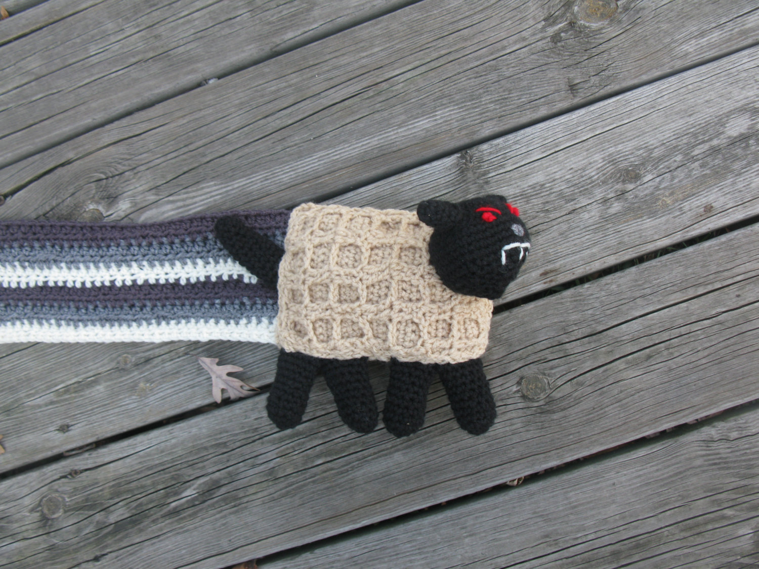 I will crochet a Tac Nayn scarf just for you out of 100% acrylic yarn - which means it will be (gentle cycle) machine washable and machine dryable! Wear it to parties, conventions, and snowball fights without worrying about how to clean it :)