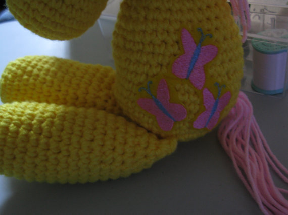 Fluttershy crocheted in Smartypants style. Why? Because I can. that's why. Wanna fight about it?